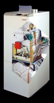Напольный газовый котёл мощностью 35 кВт. Плавная модуляция мощности, котёл предназначен для отопления и нагрева горячей технической воды во встроенном накопительном баке объёмом 95 л, чугунный теплообменник, искровое зажигание, автоматическая диагностика, эквитермическое регулирование, функция Лето - Зима, контроль отвода продуктов сгорания, выход для циркуляции горячей технической воды, встроенный расширительный бачок и 2 циркуляционных насоса, все элементы безопасности, кнопочное управление, защита от замерзания, возможность присоединения насадки для принудительного отвода продуктов сгорания.